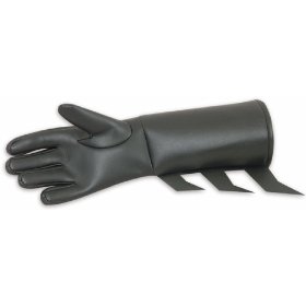 Black gloves feature a leather-like feel and are sized to cover a child's forearm. An officially licensed Batman product. Measure 15" in length.
