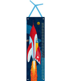 Little pilots can watch themselves "grow" to the moon. This colorful artwork is printed on canvas. Chart ships rolled; decorative nails and coordinating ribbon included. 12" x 42". Made in USA.