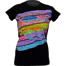 Supergirl's shield gets a striped makeover on this fitted black t-shirt. This 100% cotton t-shirt is available in women's sizes. Please note: this women's shirt is a trim style that runs small. Order one size larger than usual or consider a traditional cut adult shirt.
