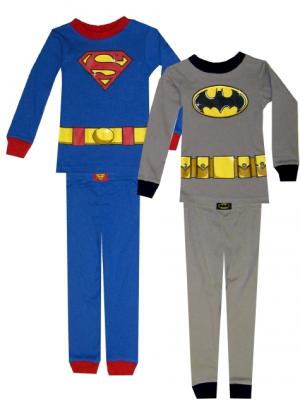 These long sleeve pajamas for boys feature Superman and Batman Superheros in a 2 pair combo. These garments are not flame resistant. Manufacturer recommends snug fit to reduce the risk of fire. They are machine washable and easy care.