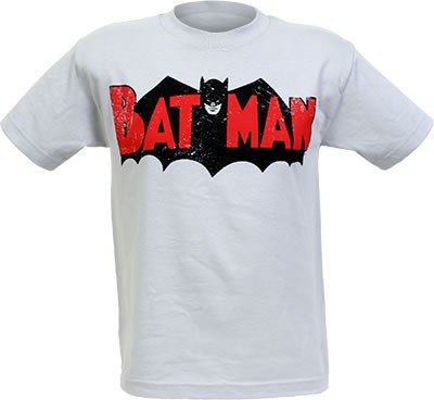 This light gray Batman Vintage Logo t-shirt has a distressed logo for a retro look and feel. 100% cotton. Available in youth sizes.