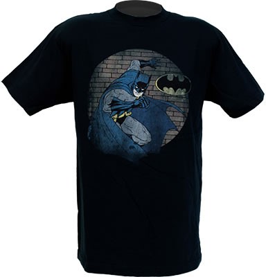 This Batman Spotlight t-shirt catches the Caped Crusader with no where to hide. This clever 100% cotton navy blue t-shirt features a comic style image of Batman as he thinks of an escape plan. Available in adult sizes.