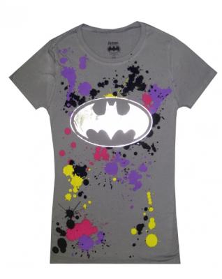 These tees for women feature a foil trademark Batman Logo and colorful paint splatters on a gray background. These lightweight, junior-cut fitted t-shirts are tagless, machine washable and easy to care for.