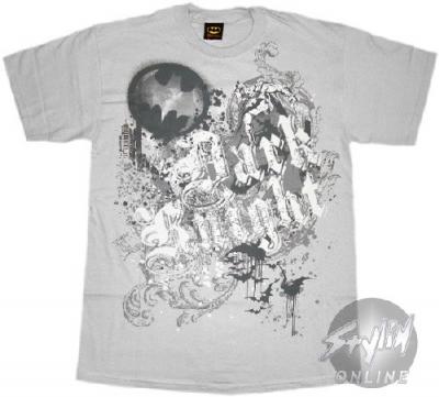 Batman Dark Knight Text T-Shirt This is an officially licensed Batman t-shirt in which these Batman shirts have been screen printed with the Batman image on front. These Batman tshirts are usually made from heavyweight preshrunk 6oz. cotton tee shirt blanks. Check back often for some of our new Batman clothing and other Batman Merchandise at great prices only at - www.StylinOnline.com.