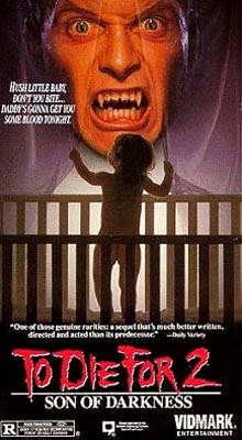 Son of Darkness: To Die for II tells the tale of of a 500 odd year old Vampire named Vlad Tepish who now goes by the name of Max Schreck (Michael Praed) & works as a doctor in a Californian hospital, apparently he is the guy whom Bram Stoker based the character of Dracula upon all those years ago... Local small town resident Nina (Rosalind Allen) takes her young baby son Tyler (Devin Sims) to the hospital because she feels something is wrong with him. Doctor Schreck takes a look at the little fella, pops out the room with him for a few minutes, comes back & gives Tyler back to his Mother as good as new. However Nina starts to become suspicious when Tyler sleeps during the day & only wakes at night, her Brother Danny (Jay Underwood) begins to undergo a sinister change as he starts to go out with a Vampire named Cellia (Amanda Wyss) & a man named Martin (Scott Jacoby) contacts her & says that Max is a Vampire & to be wary of him. Meanwhile violence breaks out because there is a power struggle in the Vampire hierarchy as Max's Brother Tom (Steve Bond) dislikes the idea that all Vampires should drink blood from blood banks in hospitals, no Tom likes the hunt & the kill of human prey too much...