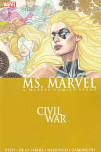 Ms. Marvel enlists in the Civil War! With the Super Human Registration Act in full effect, Carol Danvers joins forces with Simon 'Wonder Man' Williams and Julia 'Arachne' Carpenter to police and train heroes. But there's a traitor in their midst - someone who is undermining the registration movement and endangering everyone! Plus: BECAUSE YOU DEMANDED IT! Rogue appears in the pages of Ms. Marvel! But if Rogue is a friend, why is Carol attacking? And finally, a child with the ability to turn anything he imagines into reality has begun to read Carol's sci-fi epic 'Binary,' based loosely on her own life among the stars. Within minutes, the library is overrun with visions from Carol's book - and soon, all of New York City is threatened!