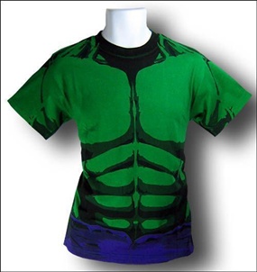 Finally, the Hulk Costume t-shirt has finally arrived ... and with genuine Hulk muscles too and authentic ripped purple pants printed on the shirt! A great shirt for any time of the year.