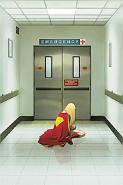 This is it! The moment you've all been waiting for, as Supergirl takes on −>kkkzzzt< "WE INTERRUPT FOR A DAILY PLANET BREAKING NEWS BRIEF: Lana Lang, Business Editor of The Daily Planet, passed away this morning from undisclosed causes. She is survived by her ex-husband, former President of the United States Pete Ross, their son, Clark, and her niece, Linda. More on this story as it develops." >fzzt< − story you won't want to miss!