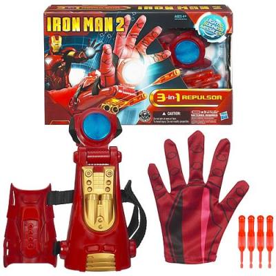 Tony Stark's armor has so many goodies packed into it that it's astounding they all came from the mind of one man. Now, another of his inventions can be yours! The Iron Man 2 3-in-1 Repulsor Blaster fits right onto your wrist and lets you fire projectiles, flash lights, and make noises just like in the movie. Keen!