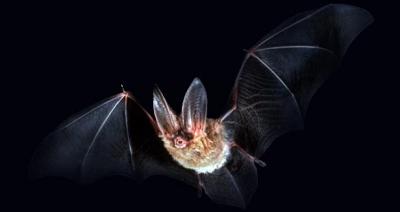 * Desmodus rotundus - or the common vampire bat. As its name suggests, this species is the most common of the three. The common vampire bat has 20 teeth, pointed ears and a long thumb.