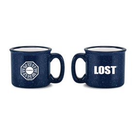 Featuring the Official Dharma symbol on a speckled 'camp fire' style ceramic mug this is a must have for any LOST fan.