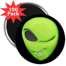 Big, black glassy eyes highlight this winking neon green alien! Maybe it's ready to take over the planet! Love science fiction aliens? Great products to show your love of extraterrestrials and UFO's!