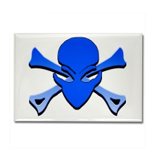 Alien Skull N Crossbones Blue Rectangle Magnet