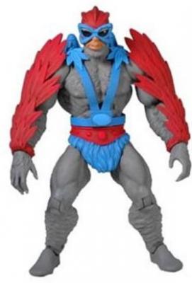Lord of Avion, a civilization of winged simians who live high on the peaks of the Mystic Mountains, Stratos is a brave honorable warrior allied with King Randor™. Although all Avions have the ability to fly using the magical Emerald Staff, many, including Stratos, have augmented their armor with rocket packs and jets to increase their speed and distance. As a member of the Masters of the Universe, Stratos fights bravely against the evil forces of Skeletor.