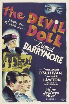 Falsely convicted Lionel Barrymore escapes from Devil's Island with fellow prisoner H.B. Walthall. A brilliant scientist, Walthall reveals to Barrymore that he has developed a process to shrink human beings. Upon Walthall's death, Barrymore makes his way back to the old scientist's lab, intending to use Walthall's formula to exact vengeance on those who have wronged him. He does so, clearing his name and securing the future happiness of his daughter Maureen O'Sullivan (who believes that Barrymore is dead) in the process. But Barrymore's crazed assistant Rafaela Ottiano isn't satisfied. "We'll make the whole world small!" she hisses, forcing Barrymore to kill her and destroy the formula. To save his daughter from scandal, Barrymore disappears into the night, the implication being that he plans to commit suicide at the first opportunity. The excellent miniature work in The Devil Doll (much of it accomplished with outsized sets, a la the Laurel and Hardy comedy Brats) successfully takes the viewers' minds off the rather silly plot. Director Tod Browning was always stronger with atmosphere than with plot and dialogue, and this film is no exception. Far less logical than the miniaturization process is Barrymore's decision to disguise himself as an old woman, since this transparent guise wouldn't convince a 2-year-old in real life. Based on the novel Burn, Witch, Burn by Abraham Merritt, The Devil Doll was scripted by several hands, including Erich Von Stroheim.