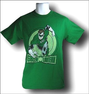 Here's a slightly distressed image of Green Lantern on an all green t-shirt flying at you with a Green Lantern Logo a' burnin'. Green Lantern Logo a' burnin'!