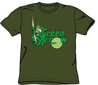This Green Arrow t-shirt is under our superhero tee shirt section featuring DC Comics and the Green Arrow superhero. Our Green Arrow t-shirts are an officially licensed product through DC comics and are made of preshrunk cotton. This tee shirt features Green Arrow getting ready to shoot one of his arrows along with the superhero's name. Green Arrow t-shirt color is as shown and this tee shirt comes in an adult size.