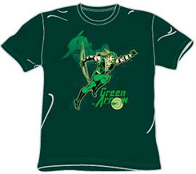 This Green Arrow t-shirt is under our superhero tee shirt section featuring DC Comics and the Green Arrow superhero. Our Green Arrow t-shirts are an officially licensed product through DC comics and are made of preshrunk cotton. This tee shirt features a double image of the Green Arrow along with the superhero's name. Green Arrow t-shirt color is as shown and this tee shirt comes in an adult size.