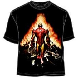 This is an officially licensed superhero tee shirt from Marvel Comics featuring Tony Stark as the Iron Man using his repulsar rays to blast his way through the a building's ceiling. This Iron Man tee shirt is a great gift for any true fan of this cool Marvel character. Our Tony Stark Iron Man tee shirt not only look and feel great, but these tee shirts are made to last. All of our Iron Man t-shirts are made of preshrunk cotton and comes in adults sizes. If you have questions regarding our Tony Stark Iron Man t-shirts or any of our other superhero tees licensed by Marvel, please email us with the product name and number.