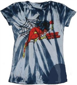 This is an officially licensed Marvel New Avengers Spider Woman Baby Tee in which this girls shirt has been screen printed with a Spider Woman design on the front of this cotton junior fitted babydoll tee shirt. These Spider Woman Baby Tee shirts are usually made from softer preshrunk 5oz. stretchy cotton blank baby doll tee shirts. These Spider Woman Baby Tees are designed to be fitted bobydoll style shirts for someone who likes to wear girls shirts that are form fitted to their body style.