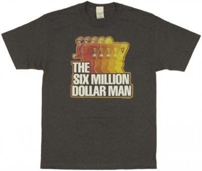 This is an officially licensed Six Million Dollar Man t-shirt in which these Six Million Dollar Man shirts have been screen printed with an official Six Million Dollar Man image on the front. These Six Million Dollar Man t-shirts are usually made from heavyweight preshrunk 6oz. cotton tee shirt blanks.