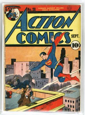 This is a very early Superman cover. Superman appeared in Action comics before he got his own title, and although he was on the cover of Action #1, he wasn't regularly on the cover until issue #19. I think it's a great image because it really captures the primal essence of Superman- strong, bold and prepared to bring justice at a moment's notice wherever he is needed.