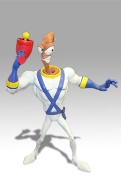 Evildoers beware as Mezco brings the intergalactic hero Earthworm Jim to life as an articulated figure! Jim comes complete with a game accurate plasma blaster as well as his famous ultra-high-tech-indestructible-super-space-cyber-suit. The 6inch scale Earthworm Jim features 8 points of articulation. He comes complete not only with his plasma blaster, but with an alternate “bendy” unsuited worm body as well.