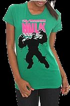 This fitted green tee features a front screen design of The "New" Incredible Hulk as he appears upon issue #377 of The Incredible Hulk.