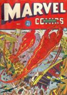 A local train yard and small town is suddenly bombed by Nazi Fifth Columnists led by Captain Von Sar and escape into the night. When the bombing hits the news, the Human Torch and Toro investigate and lend their aid to the FBI in determining where the Nazis are hiding out. When they learn that plane spotters did not warn of the incoming plane they rush to their location to find the spotters have been murdered. They find spies fleeing the scene, but when they attempt to capture one of them he commits suicide rather than talk, leaving the Torch and Toro back at square one.