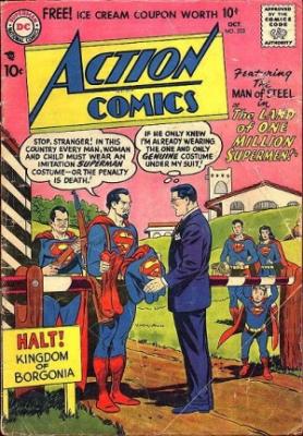 When Clark Kent is accidentally stranded in the nation of Borgonia, he discovers that everyone there, including himself, must wear a Superman costume on pain of death... which is a giant trap the dictator of Borgonia has set for the real Superman.