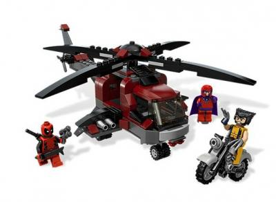 Oh no, Magneto and Deadpool are attacking Wolverine with their helicopter. Help him to escape! Dodge the missiles and make a quick getaway on Wolverine's Chopper before Magneto traps Wolverine with his magnetic powers. Includes 3 minifigures: Wolverine, Magneto and Deadpool.