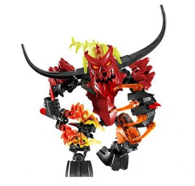 Features removable yellow evil brain, huge horns, rotating flame staff, razor-sharp fire claws, rock-hard lava shoulder armor and leg armor flames