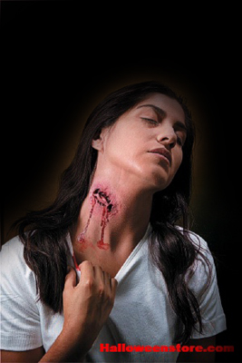 Pre-painted bite prosthetic Adhesive, remover and make-up style guide included Make-up and blood sold separately Perfect your creepy costume look with shocking prosthetic like the pros do From toddler size to plus adult, complete costume or accessories, Rubies has been making your parties more fun since 1950.