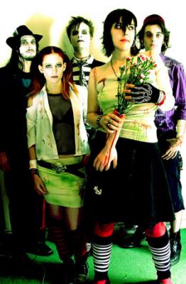 Zombina and the Skeletones have been wrenching 100% pure rock n' roll genius from the very pits of their tortured, vampiric souls since 1998. As a live band they're the bloodiest and most funnest cult experience you can have short of sacrificing yourself to some goat headed deity in the woods on St. Swithens Night. On record they're the 'Beatles of Horror', with 'hit' packed albums such as "Taste the Blood of Zombina and the Skeletones", "Halloween Hollwerin''(sic), "Monsters On 45" and "Death Valley High" a must in any self-dissecting ghoul's collection... Their newest, and MOST ROCKIN'EST CD will be here soon! It's called "Out Of The Crypt And Into Your Heart" and it's a bone-afied monsterpeice! Check out the sampler tracks on this very page... Dracula Blood! Puke It Up! Raised In Hell! They're classics already, but that's just scratchin' the surface. When this baby drops it's gonna be like somebody dropped an actual baby! Folks are gonna freak and try to get it banned just for ROCKIN' too much... but we're not gonna let the squares have their way are we, kids!? Wear your blood on the outside! Give love! Take revenge! Zombina Army Motto: Suck Blood! Destroy! TAKEDOWN GRA!!!