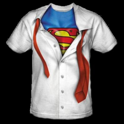 Clark Kent to Superman Costume T-Shirt. You know, that Clark Kent fellow looks strangely similar to the famed superhero with the big S on his chest... wait! Is that him? No, I was mistaken. It's YOU -- once you put on this nifty Clark Kent dress shirt & tie, emblazoned on a cool "sublimated" T-shirt.