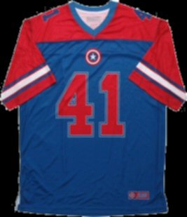 Captain America 41 Super Soldier Football Jersey rnrnThis is an officially licensed Captain America Football Jersey in which this Captain America Football Jersey has been decorated with an official Captain America image. rnrnCheck back often for some of our new Captain America clothing and other Captain America merchandise at great prices only at -