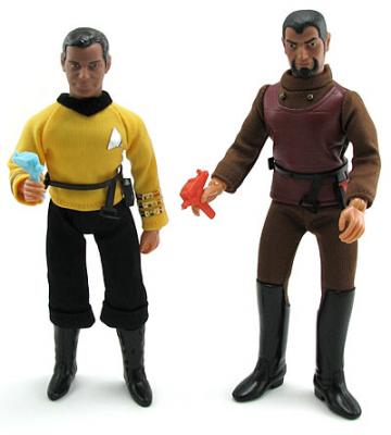In the 70s, things weren't politically correct - so Klingons were bad and that was that (and they don't like to talk about the lack of a wrinkly head, so don't ask). Both Kirk and the Klingon come with real cloth costumes, multiple points of articulation, and weapons (in UFP blue or Klingon orange). They are so much fun we can't stop playing with them. Get them now, before they are gone for another generation.