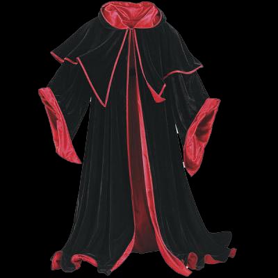 Sorcerers - sorceresses - metaphysicians: Masters of arcana array themselves in this - a full, rich, sable-black cloak of lush velvet, generously tailored in a hooded, half-cape design with extravagantly trailing sleeves, fully lined and trimmed in red velvet to command attention and respect. Hook-and-eye front closure. For men and women. Polyester velvet/satin. Machine washable. Imported. Color: Black/Red. One size fits most adults; 63" long. A Pyramid Exclusive!