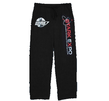 It's time to show the world your latest invention.rnrnYou were invited to tout your new robotic iGrill® at the prestigious Stark Expo -- a massive media event/science fair celebrating advanced technological achievements and Tony Stark's latest (and ostentatious) Iron Man upgrades.rnrnAnd, because you were granted a free booth, you were also granted a free, luxurious, self-aware sweet and your very own pair of Iron Man Stark Industries Expo Unisex Pajama Pants!rnrnMade from an extremely soft cotton, these Iron Man pajama pants for men and women feature a Stark Industries logo on the left leg.rnrnOn the right leg, the official Stark Expo logo and credo rendered in bold (and subtle) vertical text.rnrnMore reasons why these lounge pants are simply the coolest:rnrnSoft? Oh, yeah.rnAn elastic waistband with drawstring tie.rnUnisex sizing for all comers -- men, women, and perhaps teenage inventors tinkering with homemade Iron Man armors.rnSpacious pockets.
