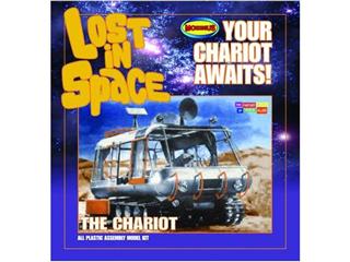 Never before offered by Aurora in the 1960s, this all-new kit by Moebius Models presents the first mass-produced model kit of the Chariot, the space age ATV/SUV that transported the Robinson family across many alien landscapes in the classic Irwin Allen TV series, Lost in Space! This 1:24th scale model kit features detailed treads, full interior detailing, and a figure of the B-9 Robot. It all comes packaged in an Aurora-style box with detailed assembly instructions.