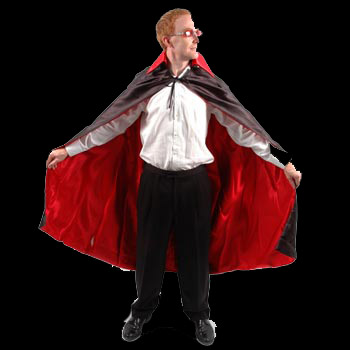 Great satin vampire cape, fully reversible (black or red) with classic 'stand-up' collar.