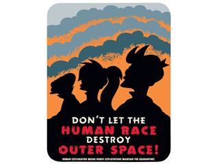The 31st century beckons as Futurama's best-selling tin signs return in a convenient 6" x 9" size! Bender offers sage advice with "Bend With Care" and warnings are offered that "Don't Let The Human Race Destroy Outer Space!" Each sign features characters like Bender, Fry, or Leela, and they can be hung on the wall or stood up on a flat surface with the built-in easel.