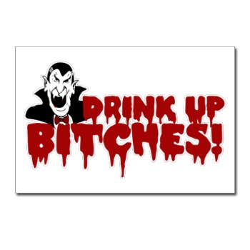 Dracula is having a Halloween party, drink up bitches! T-shirts, treat bags and trick or treat party gear! First introduced 2 yrs ago! Now our funny Drink up bitches gear is out in time for Halloween!