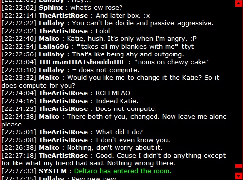 [00:37:41] TheArtistRose : Maybe I should change names. ;P jkjk