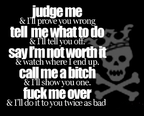 Tell me what to do and i'll tell you off. Say i'm not worth it and watch where i end up. Call me a bitch and i'll show you one